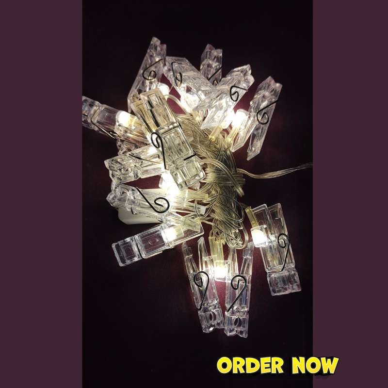 + Free ShippingClip Photo Holder String Light (14L): A string light (14 bulbs) with clips for holding photos or small decorations.