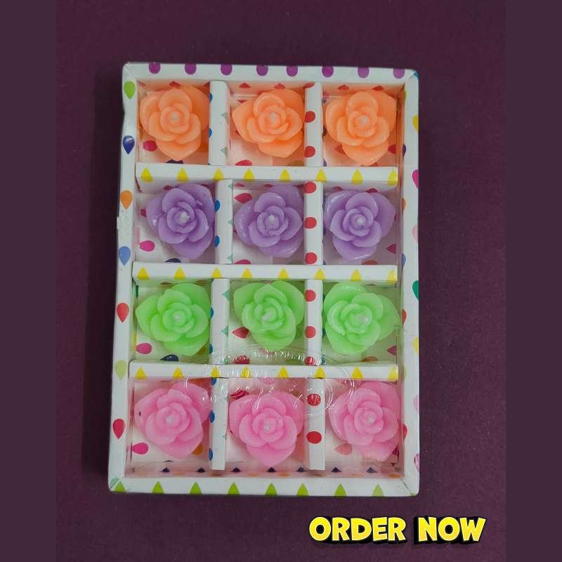 Illuminate your space with our stunning Flower Design Floating Candles, designed to create a mesmerizing ambiance for any special occasion. This box contains 12 meticulously crafted candles, each a miniature work of art that effortlessly floats on water. They are the perfect addition to your Diwali decorations, parties, or tranquil evenings at home.