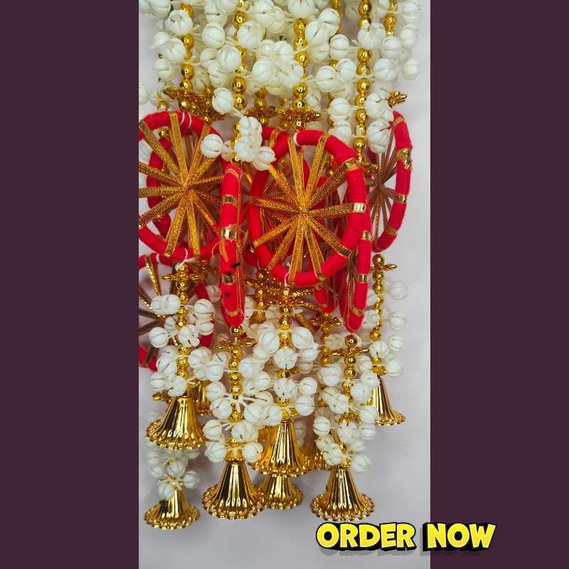 Mogra and colorful pom-pom door hanging (1 Pair)