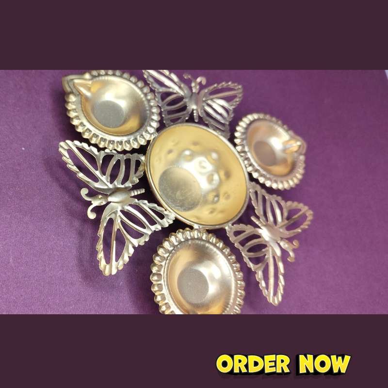 Small Size Butterfly Design Urli Pooja Diya (6.4 Inch)